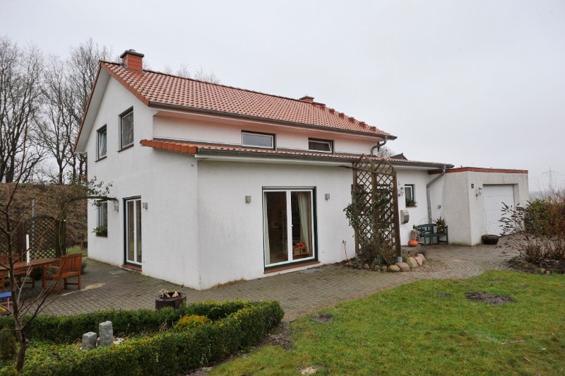 Dieses gepflegte Einfamilienhaus aus dem Jahre 2005 bietet einige angenehme Überaschungen. Im Erdgeschoss befindet sich das geräumige Wohnzimmer mit Zugängen auf die Nord-West und Süd-West Terrassen. Ein Kaminofen spendet hier angenehme Wärme und verbreitet Gemütlichkeit. Vom Eingangsflur gelangt man in das Gäste WC sowie in den Hauswirtschaftsraum mit Durchgang zur Doppelgarage. Hier befindet sich auch die Pellet-Heizung mit welcher hohe Öl- und Gasrechnungen der Vergangenheit angehören. Zum Kochen und Verweilen lädt die Küche mit eingepasster Eckbank und maßgefertigter Einbauküche ein. Nun fehlt nur noch das Arbeitszimmer und das Erdgeschoss wäre komplett. Über die Echtholztreppe gelangt man in die obere Etage. Hier befinden sich drei Schlafzimmer, das Badezimmer mit großem Fenster, Badewanne und extra Dusche. Das Hauptschlafzimmer hat Zugang zum Garagendach, welches als große Terrasse vorbereitet ist und auf welchem die Solaranlage für die Warmwasserversorgung installiert ist. Die Verbrauchsnebenkosten liegen zur Zeit, für eine fünfköpfige Familie bei nur 140,- Euro monatlich. Aufgeteilt in Strom: ca. 80,- €, Wasser: ca. 25,-€ und Pellets/Heizung ca. 35,-€ (Angaben des Eigentümers). Ein Energieausweis liegt in Kürze vor.Dieses Angebot interessiert Sie? Rufen Sie mich an und kommen Sie zum "Open House" am 20.01.2013 von 12:00 bis 16:00 Uhr.