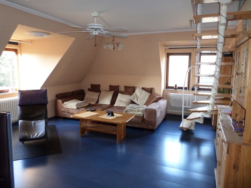Spitzboden ausgebaut 1 Zimmer mit Raumspartreppe..