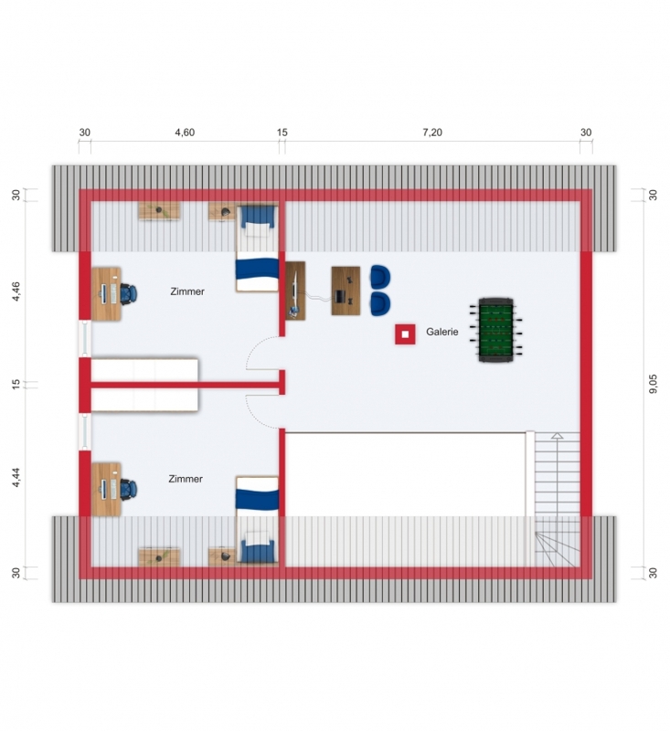 Zusätzlich stehen Ihnen im Dachgeschoss zwei separate Räume als Arbeits-und Gästezimmer zur Verfügung.