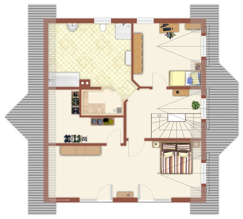Bei der hier angebotenen Immobilie handelt es sich um ein Holzständerhaus aus dem Jahre 1998. Über zwei Etagen sowie einen Vollkeller erstrecken sich knapp 270 m² Wohn- und Nutzfläche. Mit ca. 100 m² und einer sehr angenehmen Deckenhöhe bietet der Keller eine Menge Platz für Hobbys, Lagerflächen und Hauswirtschaft. Um dieses Platzangebot nutzen zu können ist allerdings eine Abdichtung und Sanierung der Kellerwände notwendig. Ab dem Treppenhaus ist Holz das vorherrschende Materieal. Neben der Außenverschalung sind auch im Innenbereich Zwischendecken, Türen, Fenster und große Teile der Wandverkleidung aus Holz. Im Erdgeschoss sind das Arbeitszimmer und die Küche offen zum Wohn und Essbereich gestaltet wodurch das aus vielen Richtungen einfallende Licht gut mit der Mischung aus Holzverkleidung und heller Putzwand harmoniert. Im Obergeschoss steht Wellness auf dem Plan. Das Badezimmer müßte zwar ebenfalls saniert werden bietet aber viel Raum für z.B. eine freistehende Badewanne, einen Doppelwaschtisch oder eine Walk-in Dusche und das mit direktem Zugang zur Sauna. Ebenfalls sehr groß ist das Hauptschlafzimmer mit Dachgaube, zwei bodentiefen Fenstern und einem Ankleideraum. Ein weiteres Schlaf-/Kinderzimmer und ein Büro/Gästezimmer runden dieses Angebot ab und ermöglichen eine Vielfältige Nutzung.Lagebeschreibung: