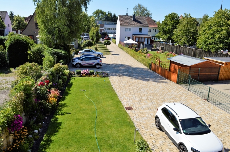Das Grundstück umfasst insgesamt ca. 1.000 qm. Hier befinden sich sowohl eine größere Grünfläche als auch 5 Stellplätze. Die Zufahrt erfolgt über die Bergstraße.