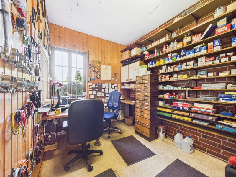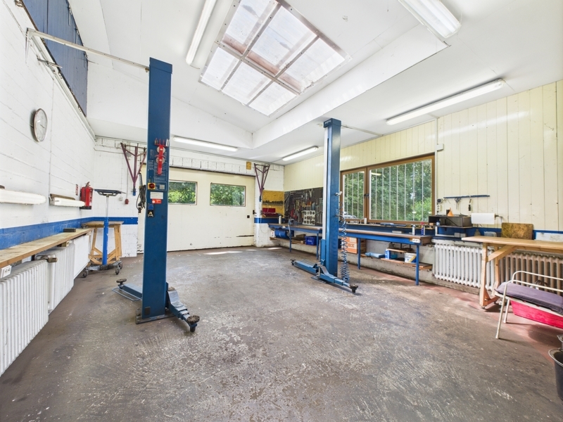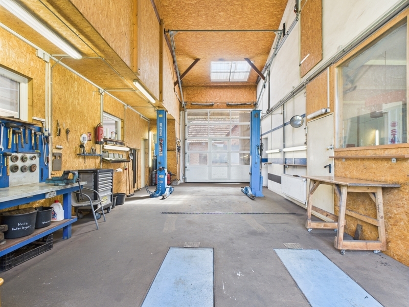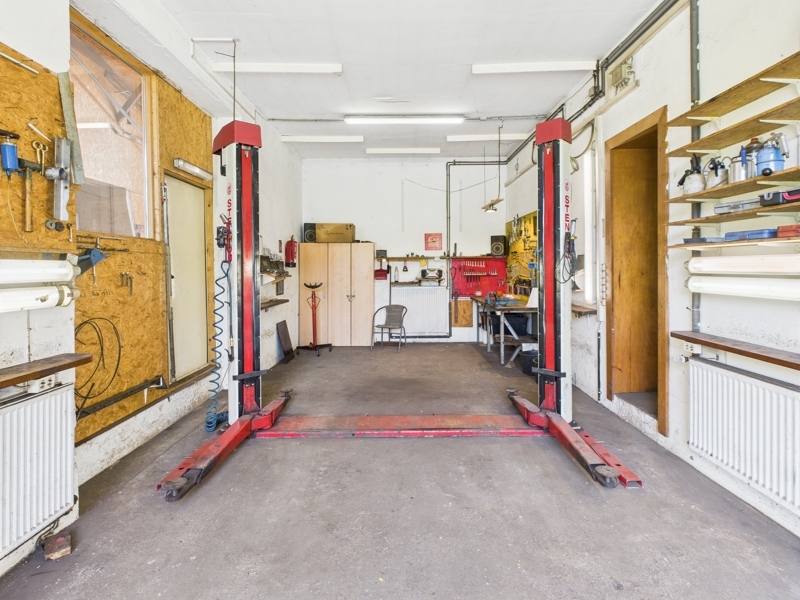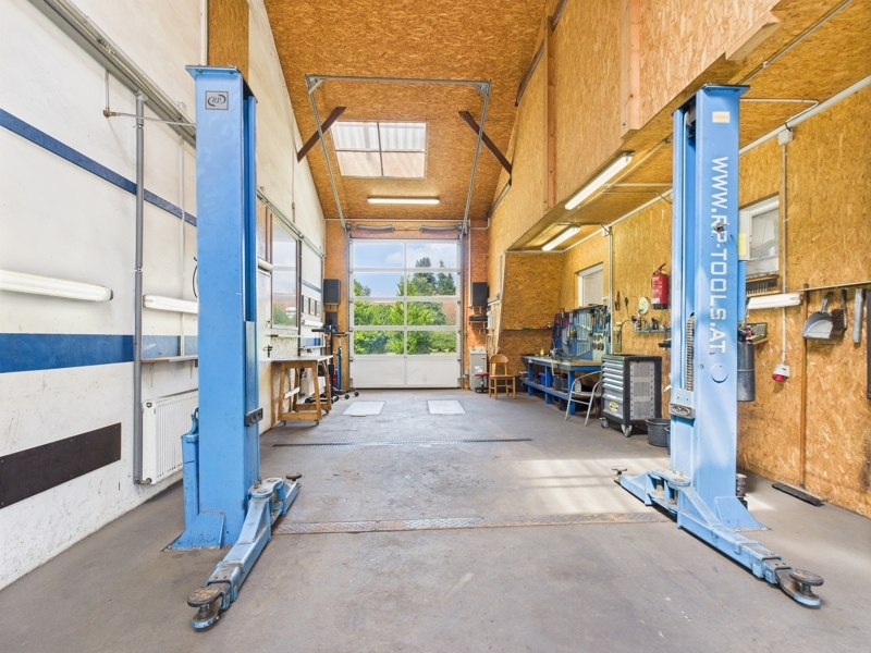 Kfz-Werkstatt mit professioneller Ausstattung und EntwicklungspotenzialAuf dem Grundstück im Mischgebiet befindet sich eine vollständig ausgestattete Kfz-Werkstatt mit einer Gesamtfläche von ca. 278 m², inklusive Büroraum und Lagerfläche. Die beiden Hälften der Immobilie wurden 1960 und 1976 erbaut und seitdem durchgehend modernisiert. Unter Anderem neuer Fußboden an einem Arbeitsplatz inklusive Bewährung mit Estrichaufbau und Erneuerung der Hebebühne in 2012. Der Bereich mit der Scherenhebebühne wurde 2011 gebaut und die Halle mit einem Holzvergaser ausgerüstet.