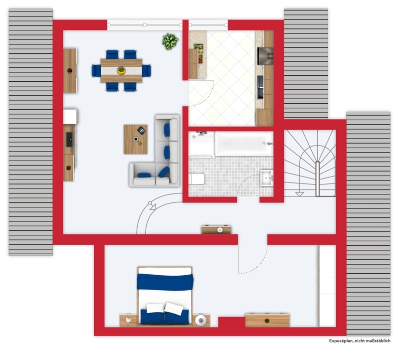 Die angebotene Wohnung wird vollständig möbliert vermietet. Von Möbeln und Accessoires bis hin zu Gebrauchsgegenständen wie Geschirr, Handtüchern und Elektrogeräten ist alles vorhanden. Auf Wunsch können einzelne Möbelstücke durch eigene ersetzt werden.Sonstige Angaben: