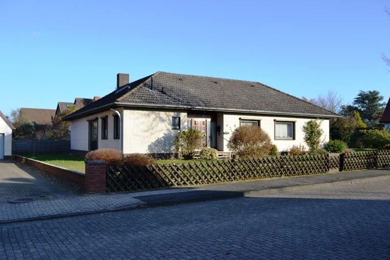Hier biete ich Ihnen einen sehr gepflegten Winkelbungalow mit Walmdach in bevorzugter Lage von Visselhövede an. Das ebenerdig gebaute Haus verfügt über ca. 148 m² Wohnfläche mit vier Schlafzimmern, eine Einbauküche mit Abstellraum, ein modernes Dusch- und Wannenbad, ein Gäste WC, ein großen Flur mit Essbereich sowie ein großes Wohnzimmer mit Kaminofen und Ausgang zur Terrasse. Im ca. 90 m² großen Keller gibt es nochmals vier Räume. Hier ist auch die Gaszentralheizung untergebracht sowie eine Sauna. Dieser Bungalow wurde erst 2008 mit einer Hohlschichtdämmung versehen und daher energetisch auf einen sehr guten Stand gebracht. Sämtliche Fenster haben Außenrollläden und helfen auch mit, in den kalten Wintertagen, Energie zu sparen. Das Haus befindet sich auf einen sehr schönen ca. 965 m² großen Grundstück mit massiver Garage. Zum Kindergarten, Grund-, Haupt-, Realschule und Gymnasium bis 8. Klasse sind es nur wenige Gehminuten, sodass diese Immobilie sehr gut für eine Familie mit Kindern geeignet ist.